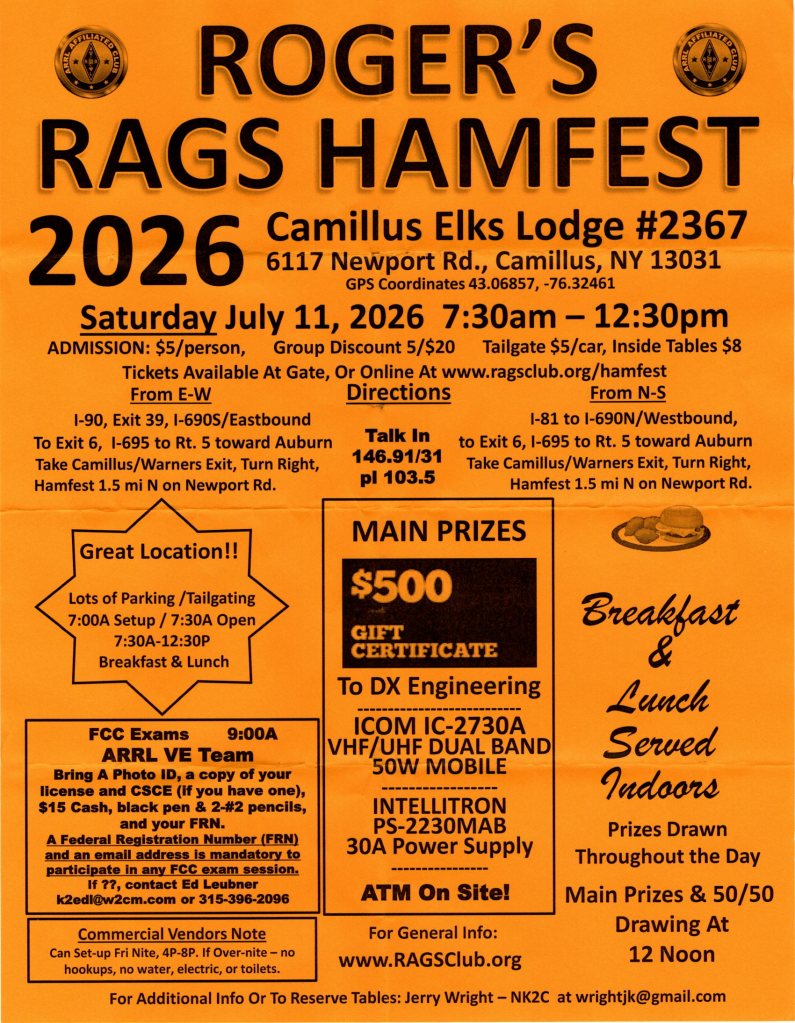 For more info contact Jerry Wright (NK2C) or email w2aerags@gmail.com